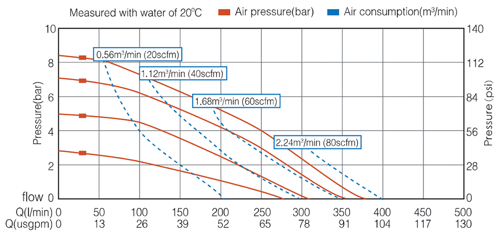 | الحد الأقصى لاستهلاك الهواء | 125scfm(3.5m³/min) |