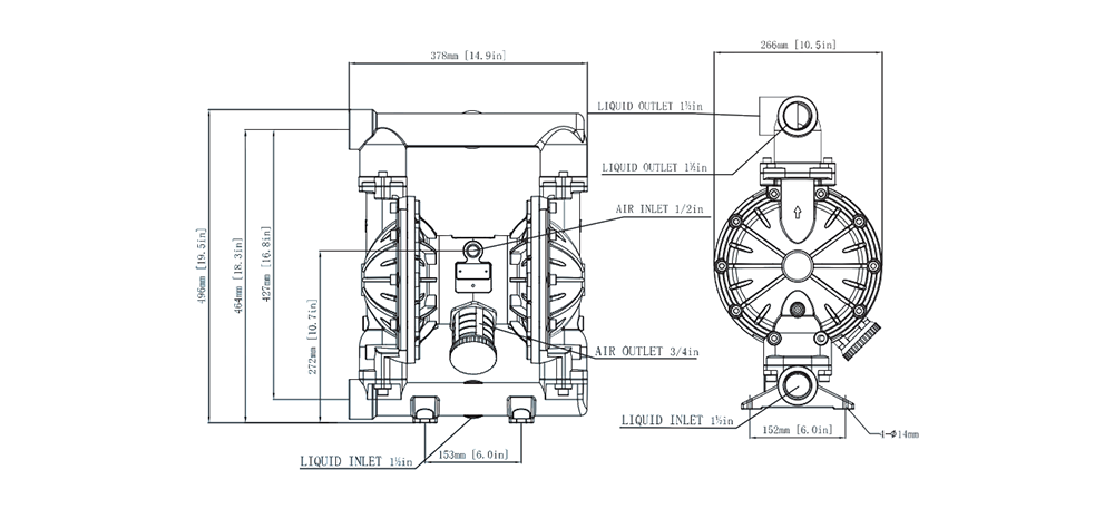 | حجم الشفط والتفريغ | 1½في/Npt/F |
