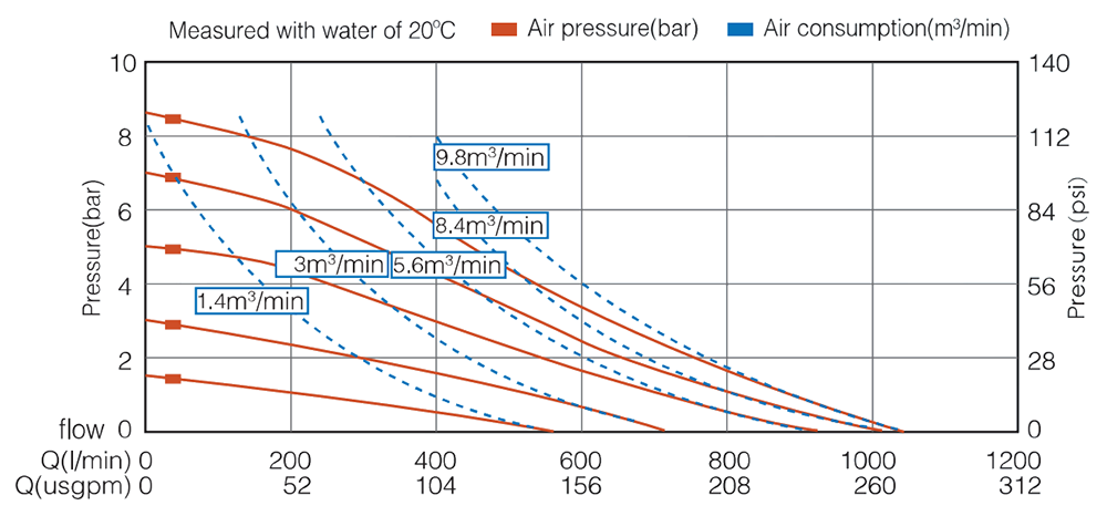 | ماكس. رفع الشفط يتغير ارتفاع الشفط مع التركيبات المختلفة لمواد الكرة والمقعد والحجاب الحاجز. | جاف 5م رطب 8م |