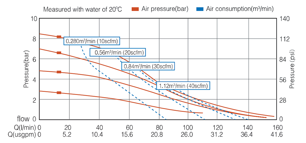 | الحد الأقصى لمعدل استهلاك الهواء | 60scfm (1.7m³/min) |
