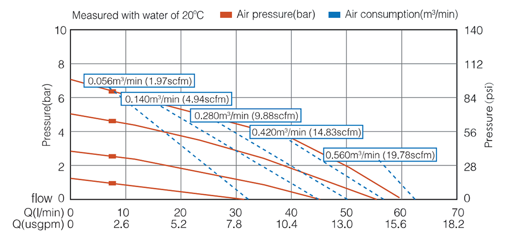 | ماكس. رفع الشفط يتغير ارتفاع الشفط مع التركيبات المختلفة لمواد الكرة والمقعد والحجاب الحاجز. | جاف 4م رطب 7.6 متر |