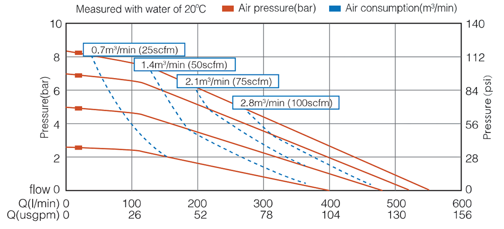| ماكس. رفع الشفط يتغير ارتفاع الشفط مع التركيبات المختلفة لمواد الكرة والمقعد والحجاب الحاجز. | جاف 5م رطب 8م |