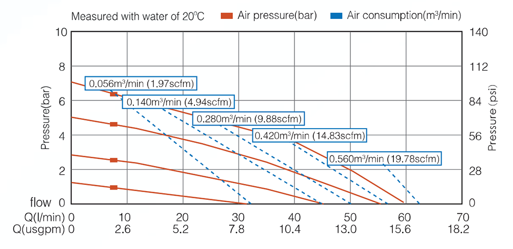 | ماكس. رفع الشفط يتغير ارتفاع الشفط مع التركيبات المختلفة لمواد الكرة والمقعد والحجاب الحاجز. | جاف 4م صافي 7.6 متر |
