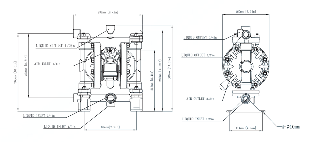 | حجم الشفط والتفريغ | 1/23/4 بوصة/Npt |