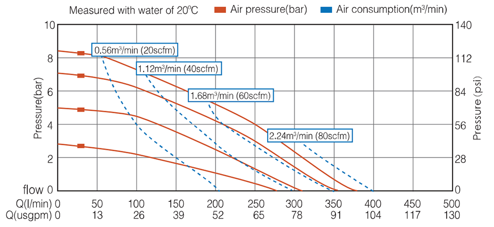 | الحد الأقصى لاستهلاك الهواء | 125scfm(3.5m³/min) |