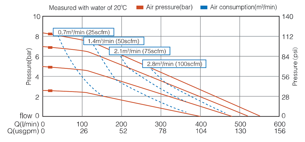 | ماكس. رفع الشفط يتغير ارتفاع الشفط مع التركيبات المختلفة لمواد الكرة والمقعد والحجاب الحاجز. | جاف 5م رطب 8م |