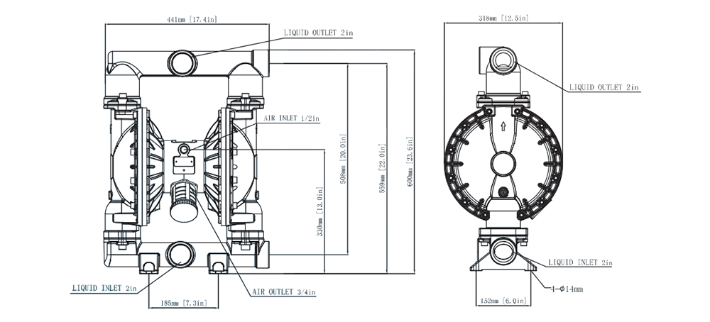 | حجم مدخل/مخرج السائل | 2" |